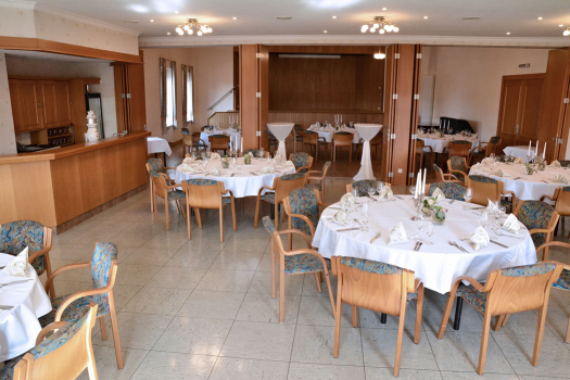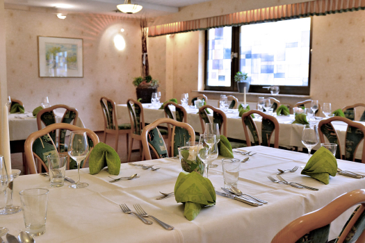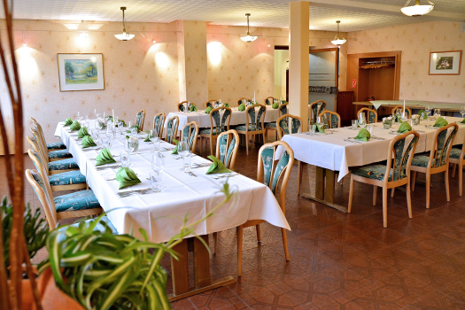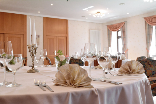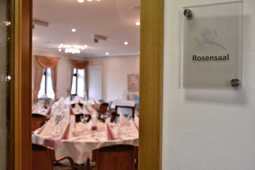 Que ce soit à la carte ou au menu, nous répondons à tous vos souhaits. Notre restaurant dispose de 50 places assises et vous invite à le savourer. Pour les festivités telles que les anniversaires, les fêtes de famille ou les funérailles, notre Rosenstube de 60 places offre toujours l’ambiance idéale. Pour les réunions ou les fêtes – séminaires ou mariages – notre Rosensaal, avec ses 120 places assises, est l’endroit idéal pour vous. Entre une petite réunion dans notre Rosenstübchen de 20 places assises et notre terrasse de 30 places assises, nous offrons à nos hôtes le service et l’hospitalité d’une gastronomie de haut niveau.